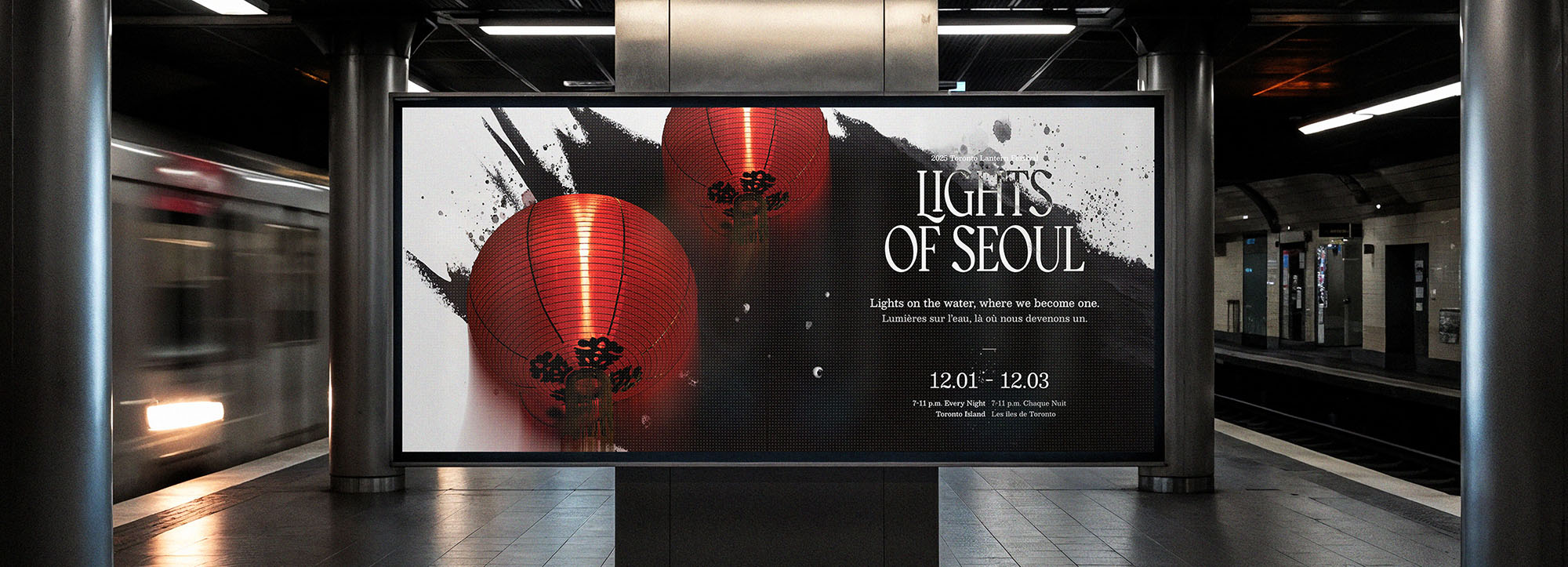 Lights of Seoul is a lantern festival held on Toronto Island that reinterprets Korean cultural traditions within a Canadian context. Through radiant lantern artworks, the festival transforms light into a shared cultural experience—inviting visitors into a collective space of celebration, reflection, and connection.
