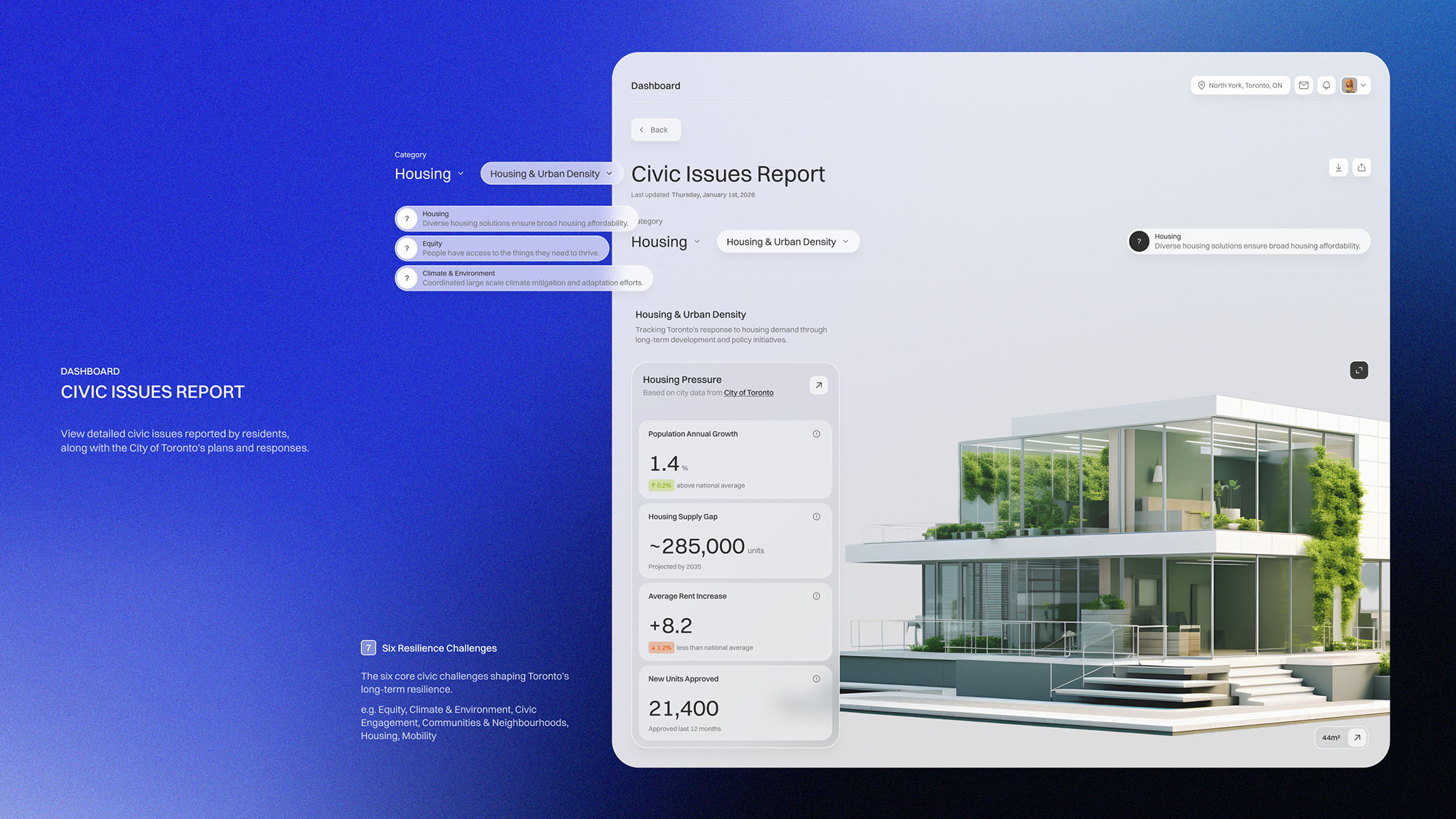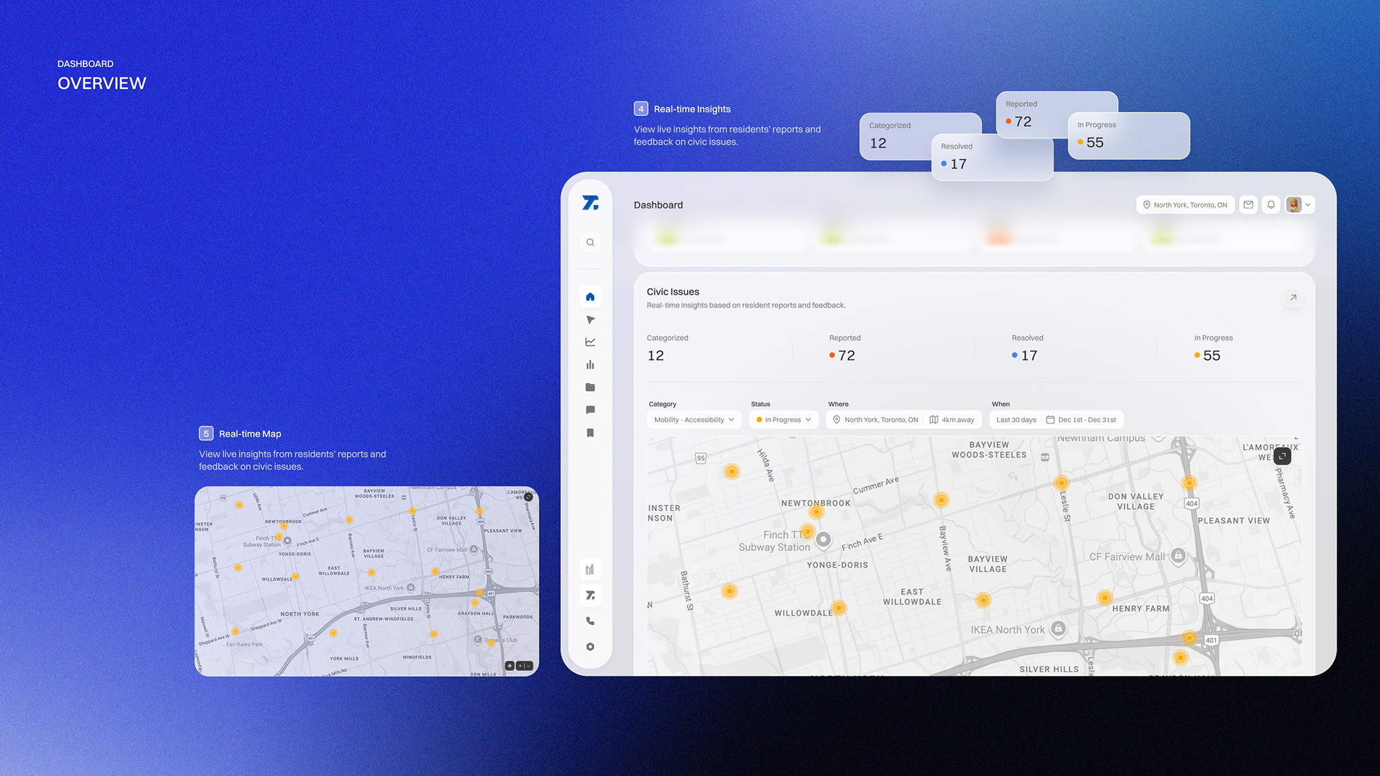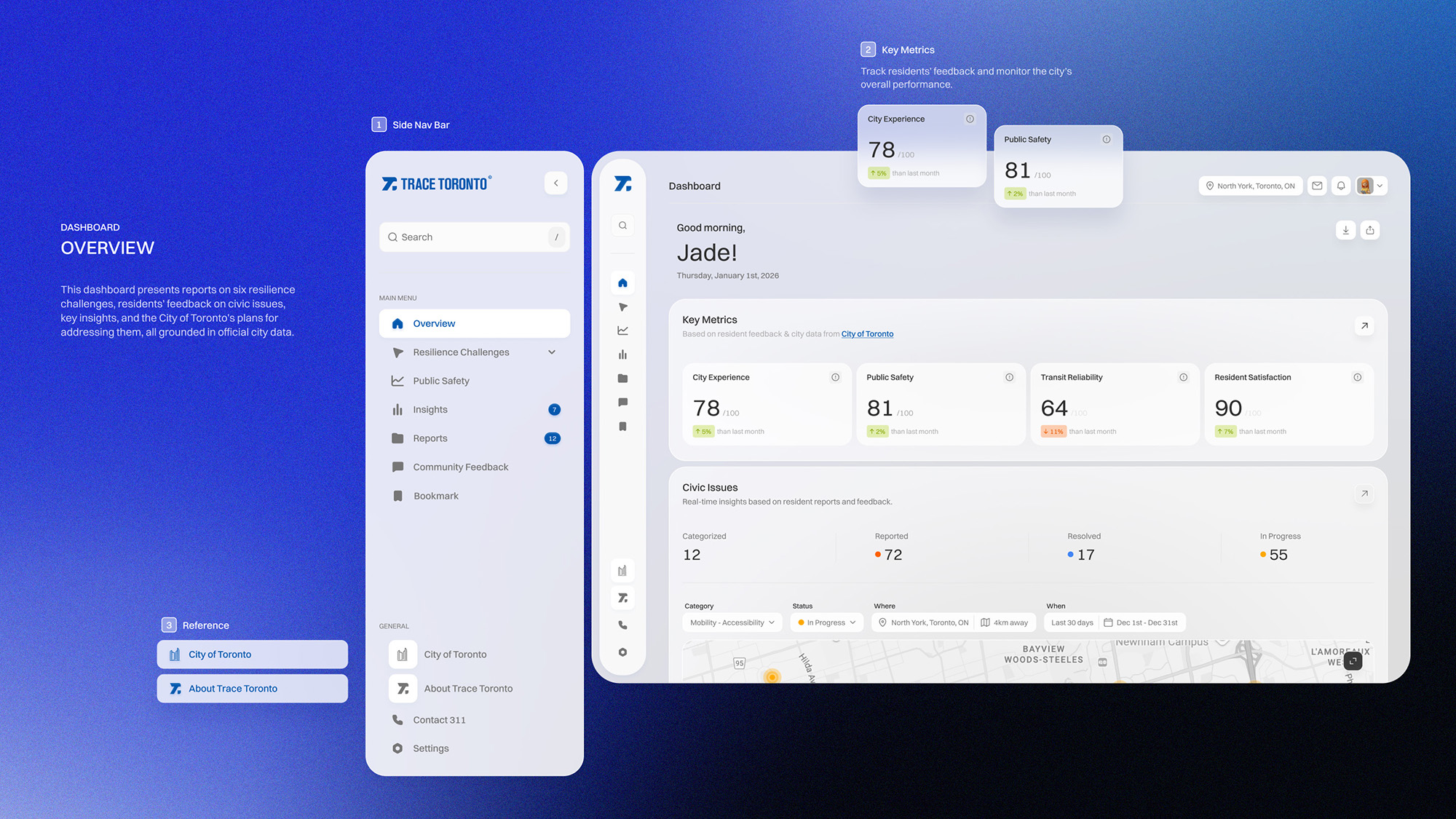 The core message of Trace Toronto is to make civic progress visible and accessible to both governments and citizens. By visualizing progress, citizens gain a clearer understanding of the city they live in, while governments gain insight into public sentiment and lived experiences. This visibility becomes a foundation for stronger trust, communication, and collaboration.